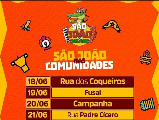 O São João nas Comunidades é um grande atrativo para a população, serão oito dias de pura alegria nos bairros de Matriz de Camaragibe com muito forró, alegria e comidas típicas e fogueiras nas várias ruas que estarão comemorando com muito forró, vejamos: